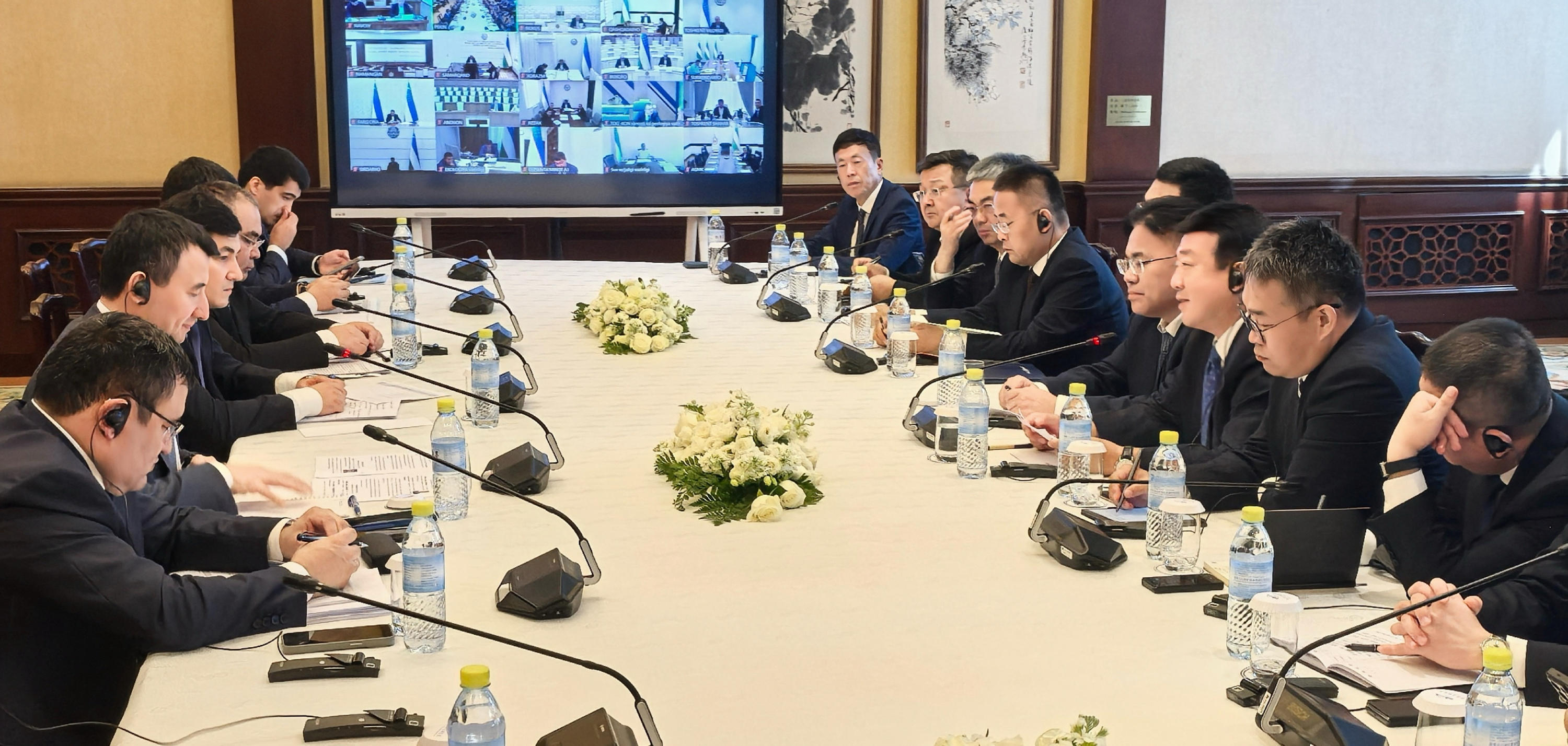 中烏茲企業(yè)家座談會前,烏茲別克斯坦第一副總理霍扎耶夫組織召開中國企業(yè)家座談會,就推動兩國重大戰(zhàn)略合作項目落地進行了交流。十余家中資企業(yè)代表參加了座談。呂軍在會上發(fā)言,與烏茲別克斯坦政府有關部委、州政府負責人交流了能源項目開發(fā)經(jīng)驗及相關建議。烏茲別克斯坦能源部部長米爾扎馬赫穆托夫在發(fā)言中表示,中國大唐嚴格按照協(xié)議約定,高質(zhì)量完成了各項工作,為烏茲別克斯坦新能源發(fā)展作出重要貢獻,后續(xù)新能源項目推進將會進一步提升雙方合作達到新高度。