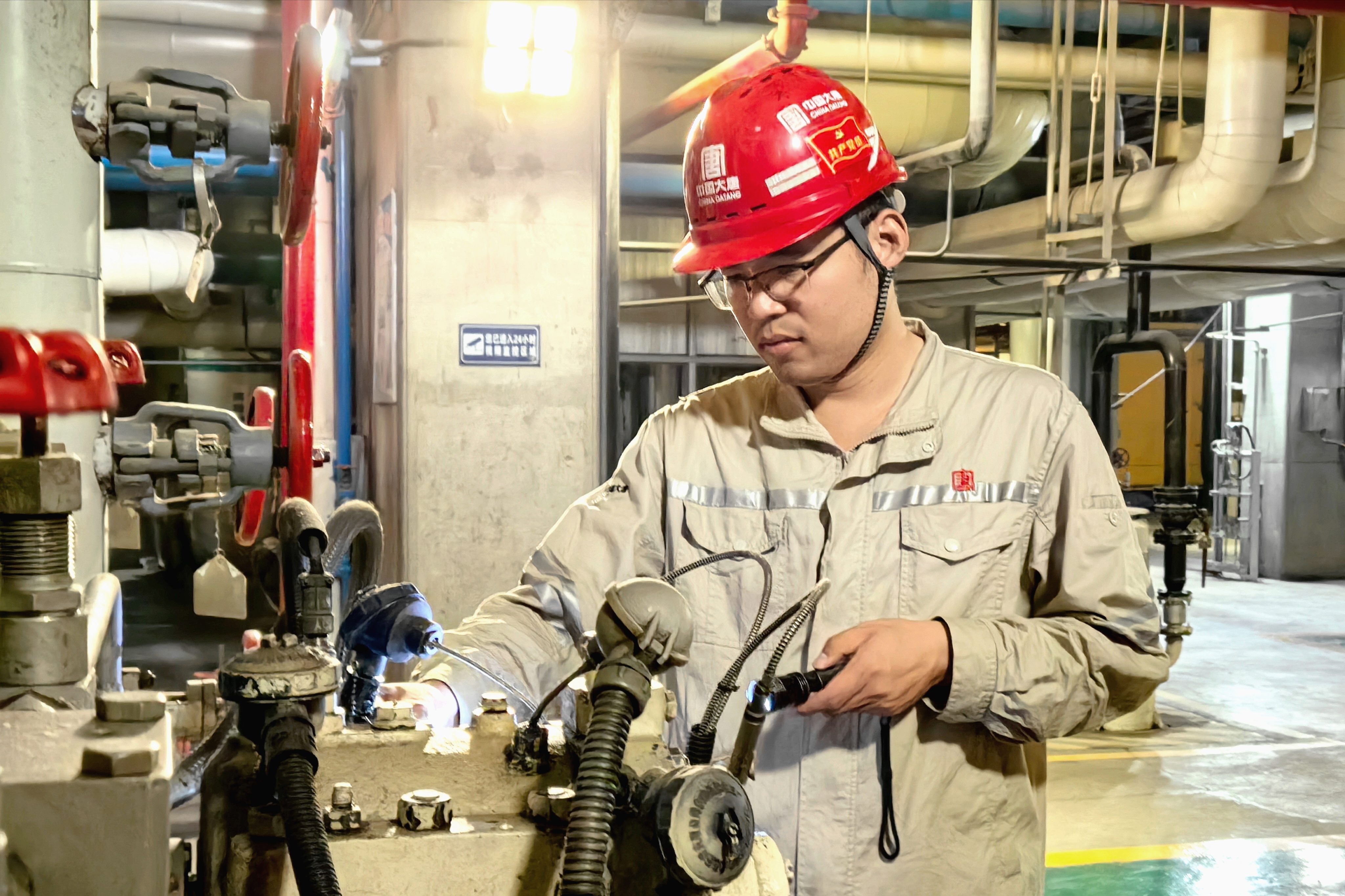 凌晨3點,廠區(qū)上空繁星點點,生活水供水壓力出現(xiàn)波動。經驗豐富的汽機點檢員王洪軍憑借敏銳的參數警覺,抓起手電筒沖向現(xiàn)場。憑借對設備的熟悉,他迅速鎖定異常區(qū)域,結合泵電流的波動,精準判斷:“是管道泄漏。必須立即處置?!彼テ饘χv機,聲音斬釘截鐵:“秦工,馬上組織現(xiàn)場作業(yè),吊車、焊工、維修組即刻到位,備齊管道、螺栓、墊片?!蹦贻p的汽機點檢長秦建亮聞訊疾馳而來,一邊奔赴現(xiàn)場,一邊調閱電子檔案?!巴鯉煾担?guī)格無誤,備件已齊備。”當維護人員火速集結時,所需備件也已同步送達現(xiàn)場。