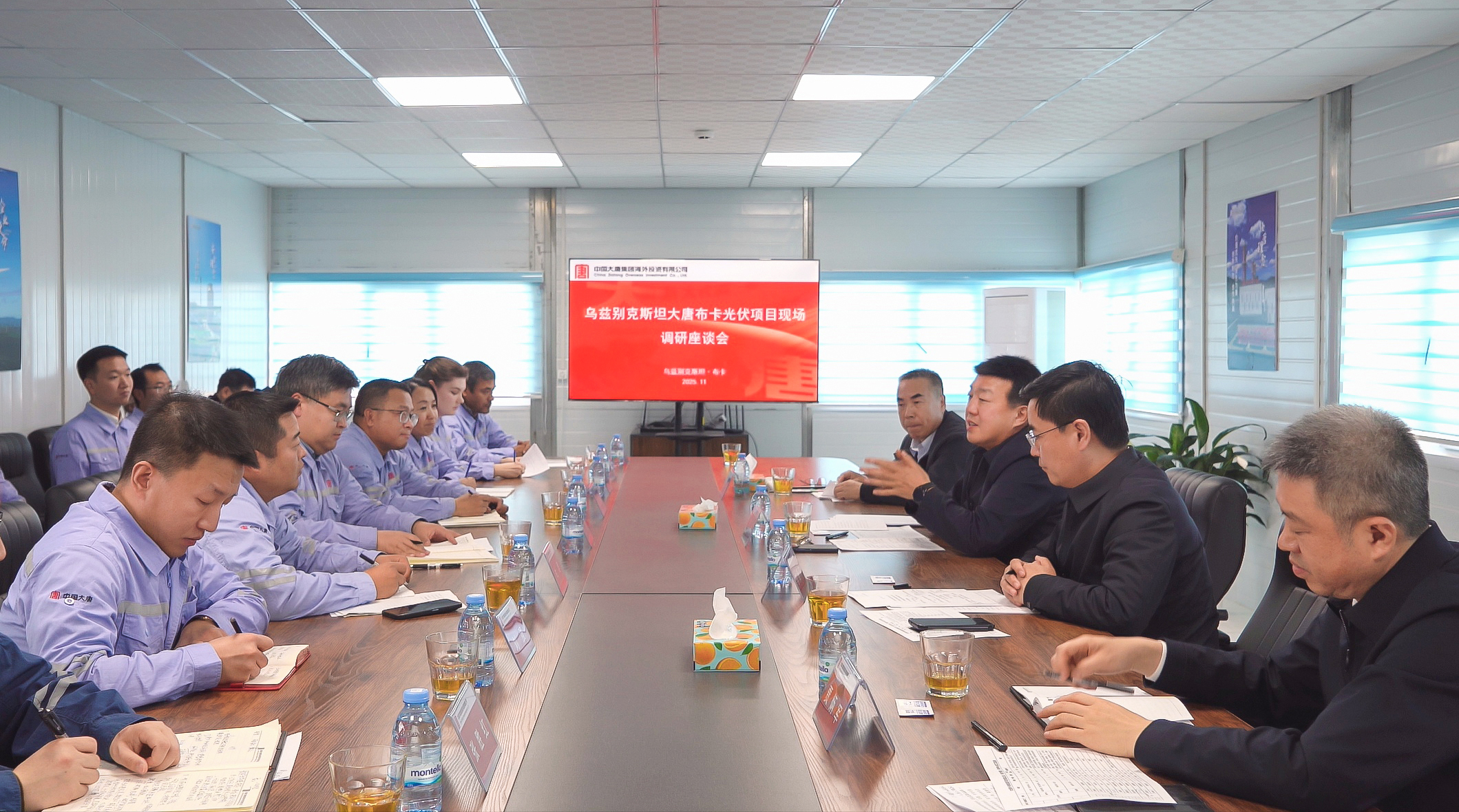 當?shù)貢r間11月10日至11日,呂軍分別前往大唐烏茲別克斯坦布卡光伏項目、中亞代表處、布卡二期光儲項目規(guī)劃建設(shè)地塊考察調(diào)研,深入光伏廠區(qū)、中控室等地詳細了解生產(chǎn)運行情況,看望慰問項目一線干部職工,并參加布卡項目現(xiàn)場調(diào)研座談會。