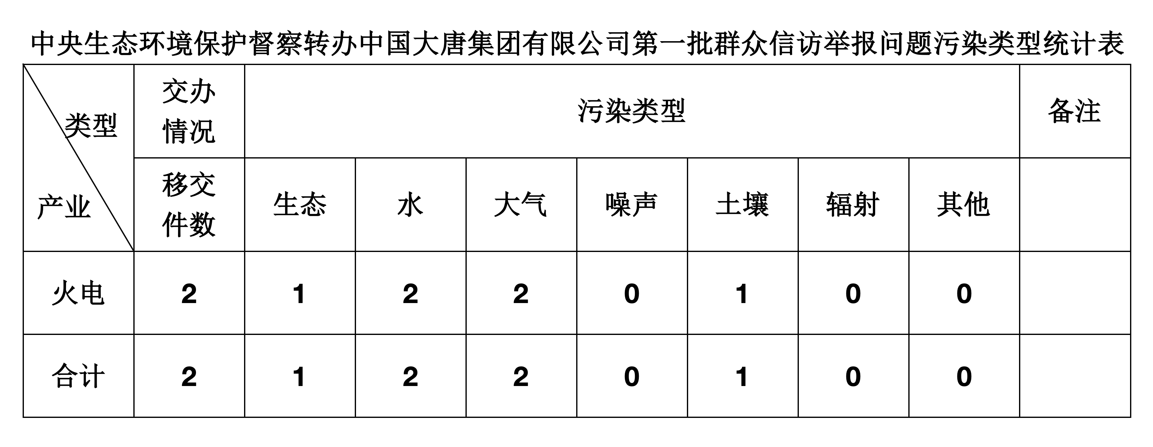 2025年5月30日,中央第七生態(tài)環(huán)境保護督察組向中國大唐集團有限公司移交第一批群眾信訪舉報件,共計2件,均為來電舉報件,涉及生態(tài)問題1個、水問題2個、大氣問題2個、土壤問題1個。所有舉報件辦理工作已第一時間進入調(diào)查核實辦理程序,辦理情況將按照相關要求反饋督察組,并及時向社會公開。