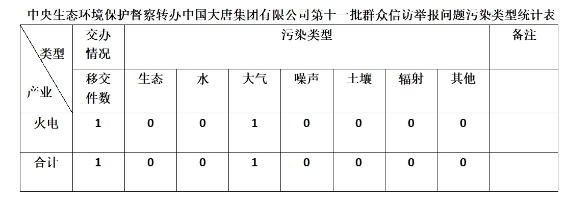2025年6月14日,中央第七生態(tài)環(huán)境保護督察組向中國大唐集團有限公司移交第十一批群眾信訪舉報件,共計1件,為來電舉報,涉及大氣問題1個。所有舉報件辦理工作已第一時間進入調查核實辦理程序,辦理情況將按照相關要求反饋督察組,并及時向社會公開。