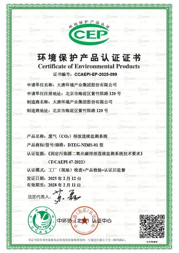 2月12日,大唐環(huán)境自主研發(fā)的二氧化碳排放連續(xù)監(jiān)測(cè)系統(tǒng)成功獲得中國(guó)環(huán)境保護(hù)產(chǎn)品認(rèn)證(CCEP)證書,成為集團(tuán)公司內(nèi)首家通過(guò)該認(rèn)證的企業(yè)。這一里程碑式的成就不僅彰顯了大唐環(huán)境在環(huán)保技術(shù)領(lǐng)域的領(lǐng)先地位,更為國(guó)家“雙碳”戰(zhàn)略的實(shí)施注入了強(qiáng)勁動(dòng)力。