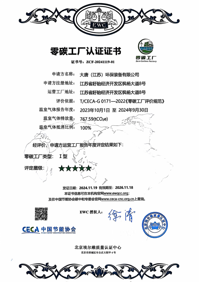 本網(wǎng)訊?近日,大唐(江蘇)環(huán)保裝備有限公司憑借其在綠色制造與可持續(xù)發(fā)展方面的卓越表現(xiàn),成功獲得中國節(jié)能協(xié)會頒發(fā)的“零碳工廠”認證證書,成為中國大唐首家獲認證的“零碳工廠”,也是江蘇省淮安市首個“零碳工廠”示范項目,為推動我國制造業(yè)的綠色轉(zhuǎn)型樹立了新的標桿。