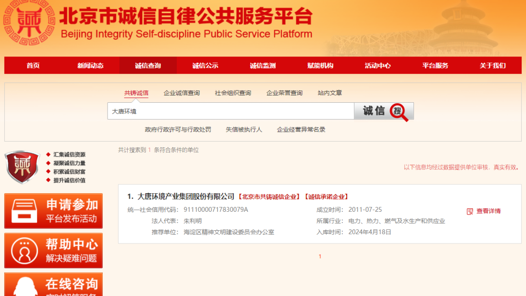 本網(wǎng)訊?近日,北京市共鑄誠信活動領導小組辦公室公布了2023年度“北京市誠信共鑄企業(yè)”入庫名單,大唐環(huán)境產業(yè)集團股份有限公司等1433家企業(yè)進入“北京市共鑄誠信企業(yè)名錄庫”。