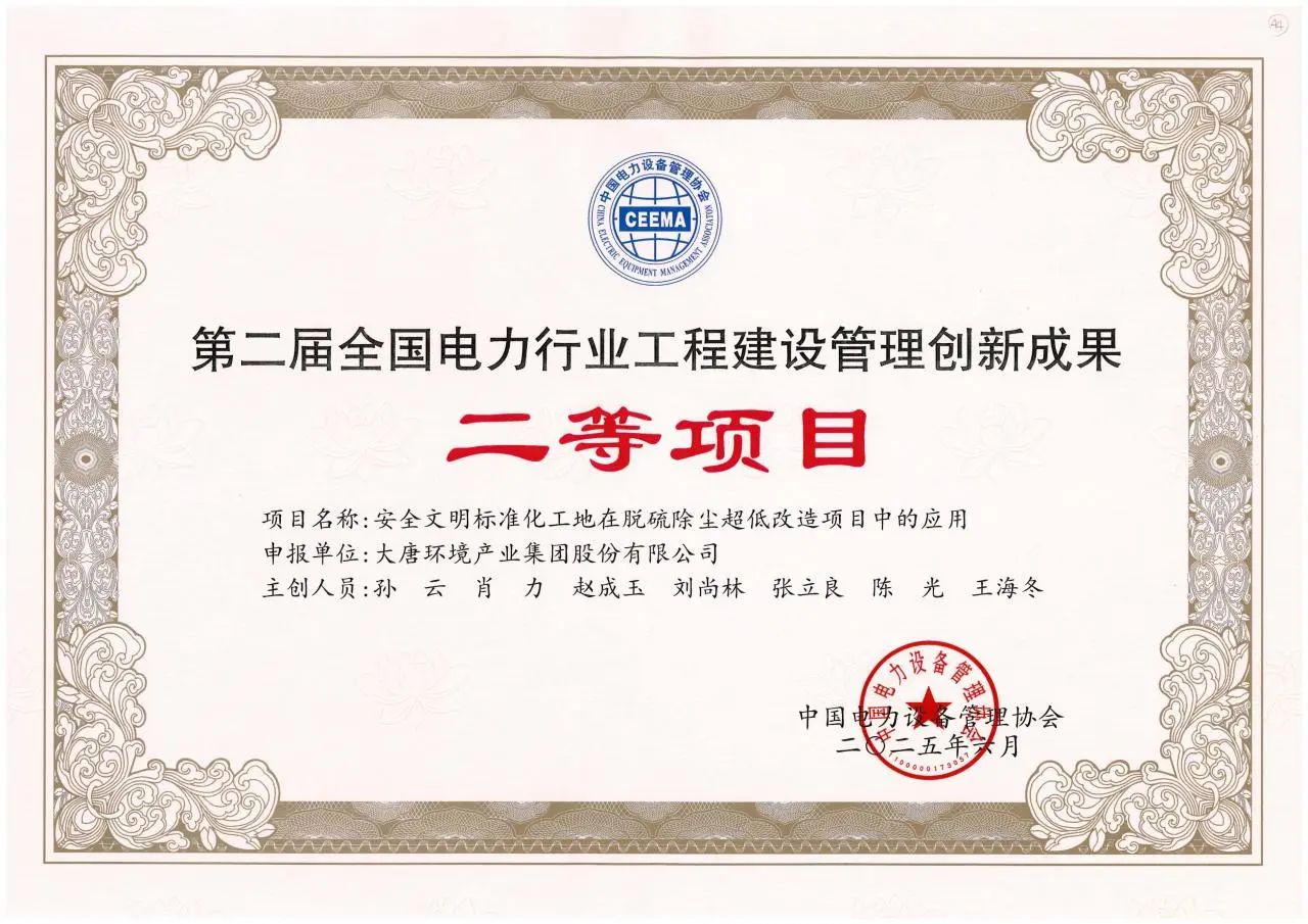 本網(wǎng)訊?近日,中國電力設(shè)備管理協(xié)會(huì)公布第二屆全國電力行業(yè)工程建設(shè)管理創(chuàng)新成果評(píng)選結(jié)果。大唐環(huán)境環(huán)保分公司雞西項(xiàng)目部申報(bào)的《安全文明標(biāo)準(zhǔn)化工地在脫硫除塵超低改造項(xiàng)目中的應(yīng)用》項(xiàng)目,憑借其在安全管理實(shí)踐中的顯著成效,獲二等項(xiàng)目獎(jiǎng)項(xiàng)。