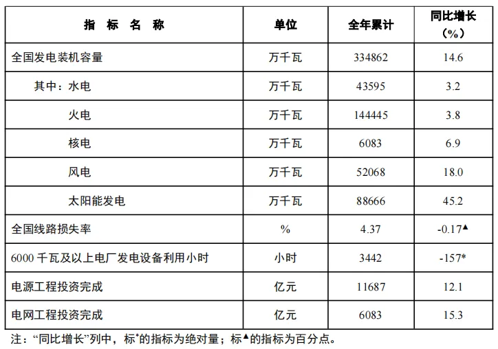2024年,全國6000千瓦及以上電廠發(fā)電設備累計平均利用3442小時,比上年同期減少157小時;全國主要發(fā)電企業(yè)電源工程完成投資11687億元,同比增長12.1%;電網(wǎng)工程完成投資6083億元,同比增長15.3%。
