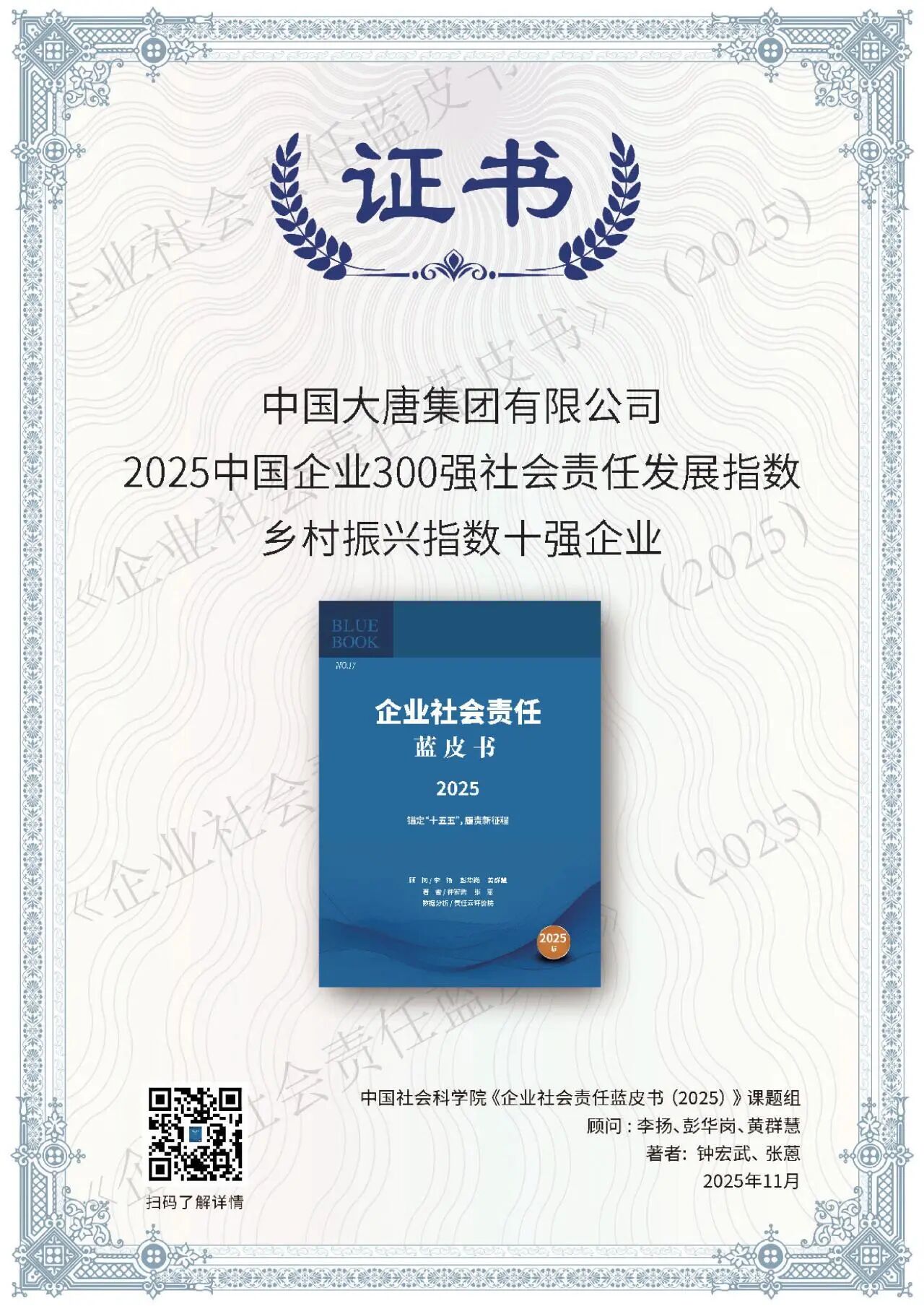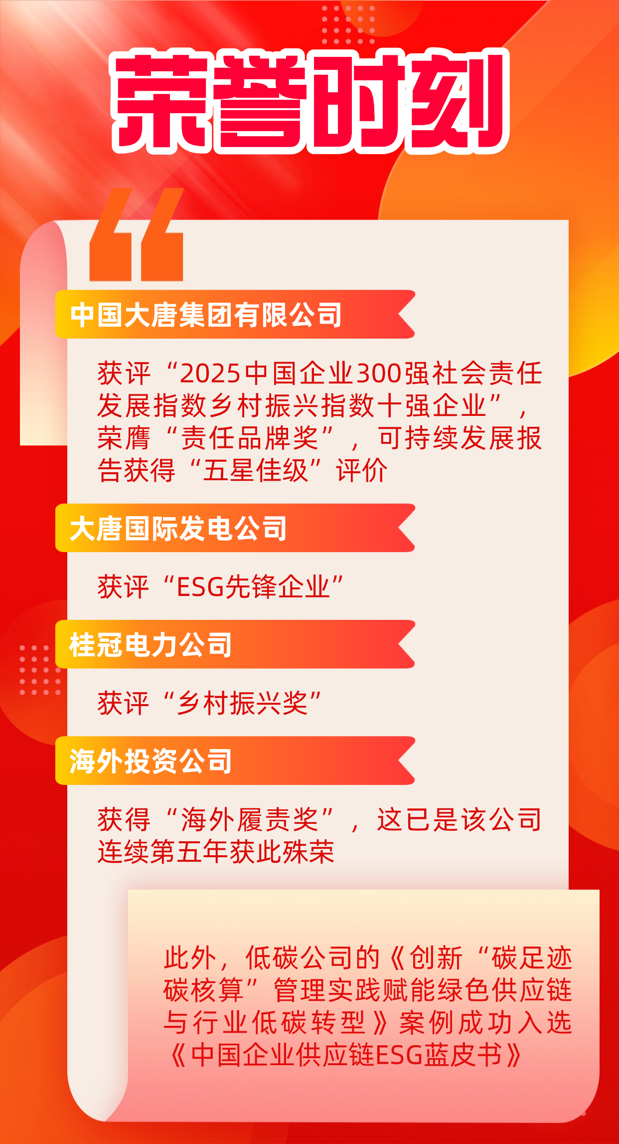 11月20日至21日,“錨定‘十五五’,履責新征程——ESG中國·第八屆北京責任展”在北京成功舉行?;顒悠陂g,正式發(fā)布《企業(yè)社會責任藍皮書(2025)》,舉辦“責任之夜——責任鯨牛獎”頒獎典禮,召開社會責任報告峰會會議。中國大唐斬獲六個獎項,一個優(yōu)秀案例入選《中國企業(yè)供應(yīng)鏈ESG藍皮書》。