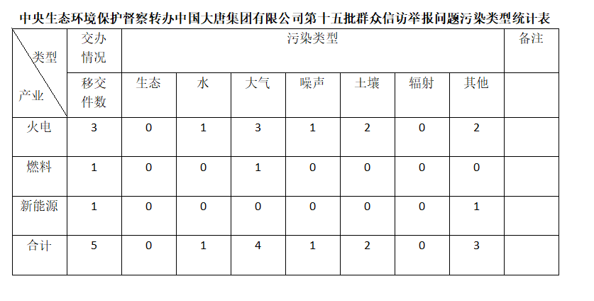 2025年6月21日,中央第七生態(tài)環(huán)境保護(hù)督察組向中國大唐集團(tuán)有限公司移交第十五批群眾信訪舉報(bào)件,共計(jì)5件,其中來信舉報(bào)3件,來電舉報(bào)2件,涉及水問題1個(gè)、大氣問題4個(gè)、噪聲問題1個(gè)、土壤問題2個(gè)、其他問題3個(gè)。所有舉報(bào)件辦理工作已第一時(shí)間進(jìn)入調(diào)查核實(shí)辦理程序,辦理情況將按照相關(guān)要求反饋督察組,并及時(shí)向社會公開。