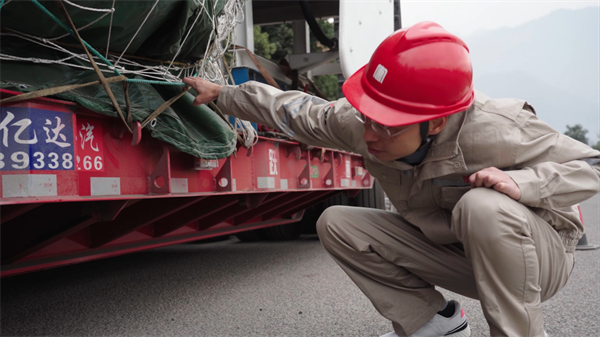 圖注:配送人員在物資現(xiàn)場進(jìn)行設(shè)備清點(diǎn)
