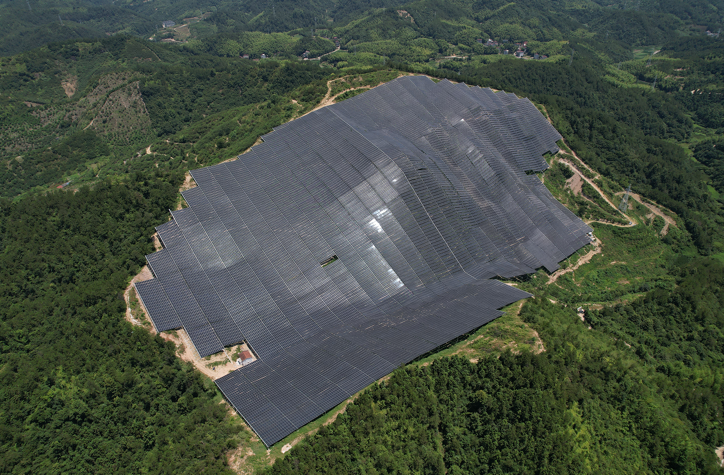浙江大唐新能源唐云光伏電站位于平均海拔800米的麗水市縉云縣山上,次第有序的光伏組件沿著高低起伏的山脈,映襯著綠色植被,恰似為山頂戴上一頂帽子。目前,唐云光伏電站項目已經(jīng)建成投產(chǎn),它采用山地柔性支架技術(shù),能將土地利用率最大化,預(yù)計每年可產(chǎn)生清潔能源3258萬千瓦時。