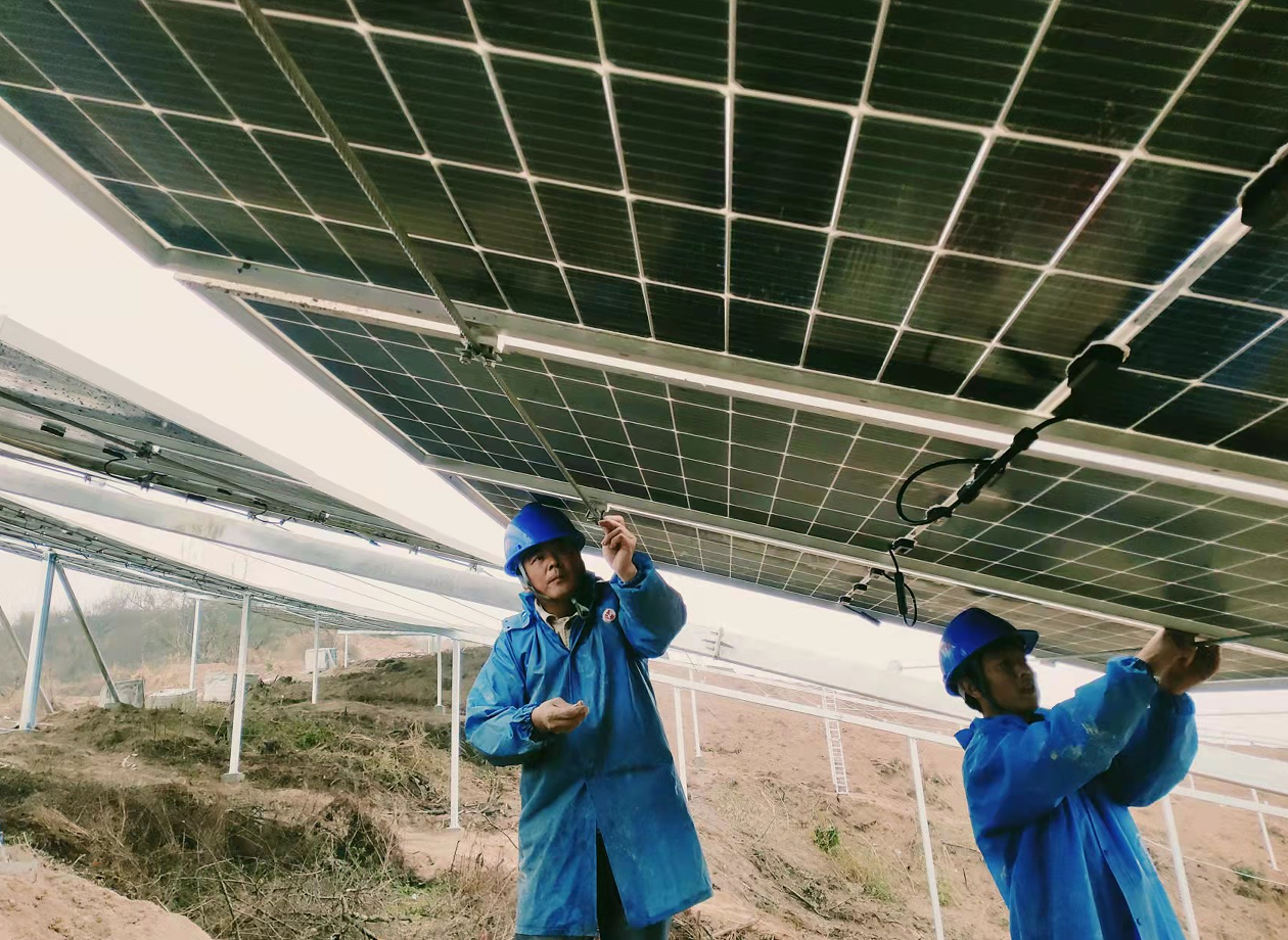 在馮剛帶領(lǐng)下,項目部成員大膽假設(shè),多方論證,決定使用柔性支架安裝方式,為山地光伏建設(shè)提供新方案、新思路。