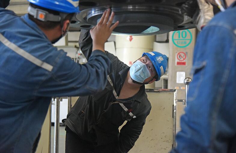 汗水浸透了工裝,他們渾然不覺,臉上流淌的汗珠,他們顧不上擦拭,一次測量、二次測量、三次測量……直到數(shù)據(jù)符合要求。“從檢修開始,我們的目標(biāo)就只有一個(gè):全力以赴、踏踏實(shí)實(shí),用實(shí)干打一場漂亮的攻堅(jiān)戰(zhàn)。”陳坤目光篤定地說。