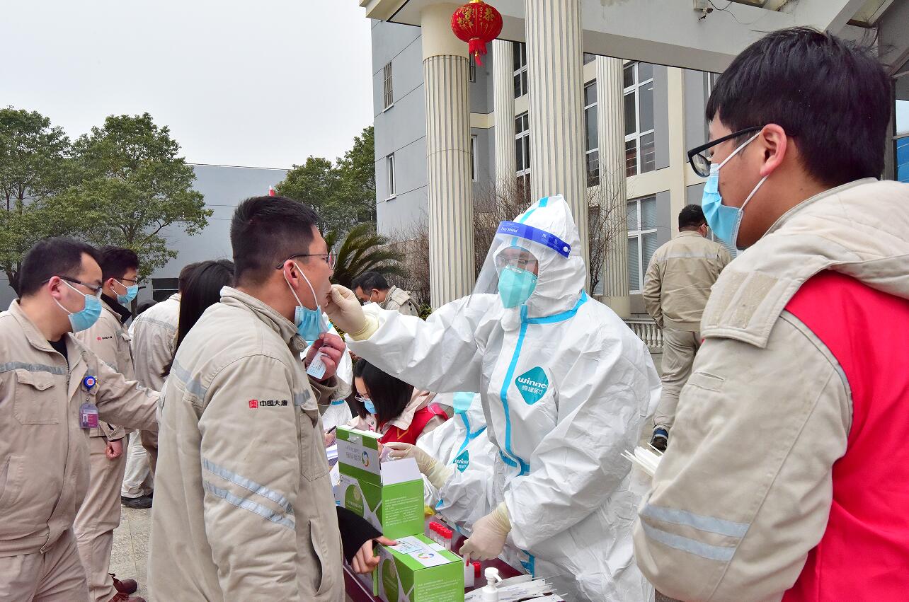 23日,在廠區(qū)臨時核酸檢測點,防疫小組正在有序指揮著分批前來檢測的人員,職工們積極配合,采樣工作井然有序。