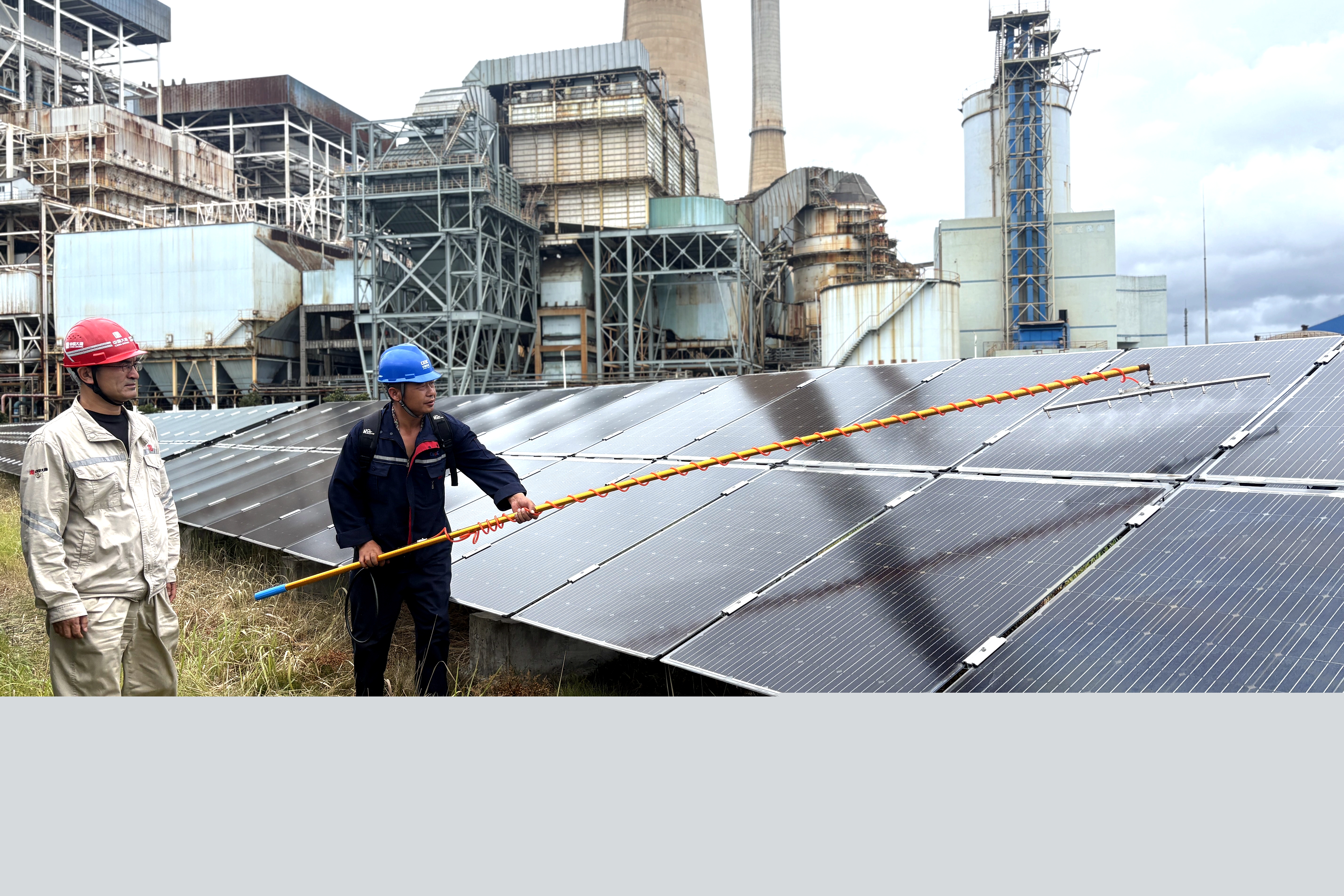 浙江新能源公司烏沙山廠區(qū)光伏電站位于火電廠生產(chǎn)區(qū)域二期場地,這里常年彌漫著白色蒸汽。蒸汽遇冷凝結(jié)后,會形成“石膏雨”,在光伏板表面結(jié)成水漬般的污垢。過去,該公司采用“人工+機(jī)器人”的清潔方式,往往剛清洗完畢,“石膏雨”便又隨之落下,最多三天,光伏板就會和未清洗時(shí)一樣。不僅如此,每次清潔時(shí)必須使用專用清洗劑,每塊光伏板要清洗5遍以上,但“細(xì)心呵護(hù)”后發(fā)電效率依舊不理想?!敖M件清洗就是治標(biāo)不治本,不加以重點(diǎn)防治,清洗也是徒勞?!睂幉▍^(qū)域運(yùn)維中心主任曹魯心感慨道。