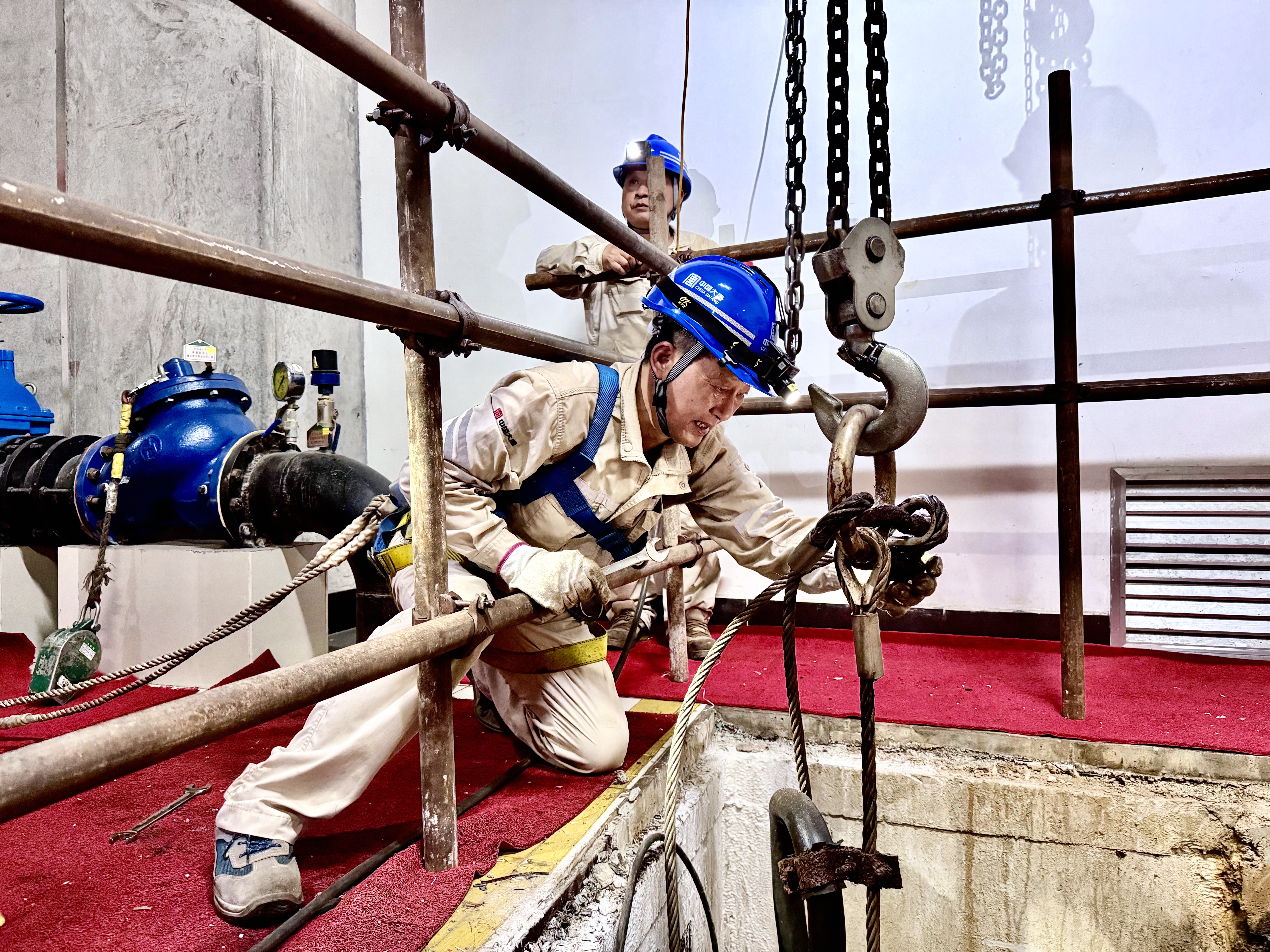8月4日,彭水水電站廠房EL213.9層悶熱如倒扣的鐵皮蒸籠,悶熱的空氣仿佛凝固成膠水,黏在每一寸裸露的皮膚上。在重慶彭水水電公司5號(hào)機(jī)組滲漏集水井井口邊緣,七八頂安全帽在蒸騰的熱氣里微微晃動(dòng),仿佛幾片浮萍,在汗水匯成的河流中載沉載浮。
