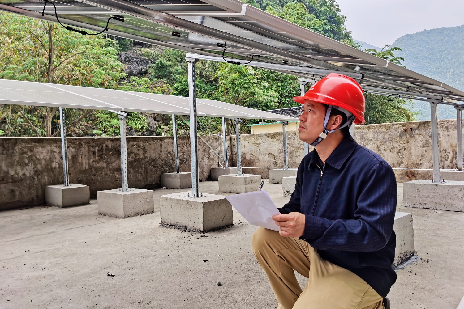 韋大林對照巡檢表查看光伏運(yùn)行情況