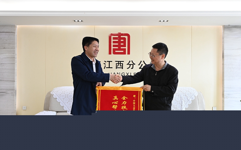 江西分公司不僅給富足村帶來(lái)了一件件看得見(jiàn)、摸得著的物質(zhì)財(cái)富,更是一筆筆豐富的精神食糧。4月13日,贛州市興國(guó)縣委領(lǐng)導(dǎo)一行專程來(lái)到江西分公司本部,將一面印有“全力扶貧不忘初心使命真心幫扶扛起社會(huì)責(zé)任”字樣的錦旗贈(zèng)送給江西分公司,不僅表達(dá)了全體村民的感激之情,更是對(duì)大唐的肯定和贊許。